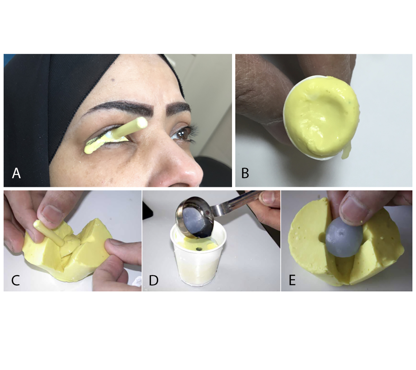 impression of eye is first step and replicating in wax shape to ensue the correct replica of the desired shape,