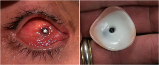 In one series of 802 patients who underwent evisceration, enucleation, or placement of a secondary implant where a hydroxyapatite implant was used, 156 of 353 (44%) of patients with pegged implants had a complication. The most common complication in this series was peg extrusion in 20% of cases, which was shown to occur less frequently with titanium pegs as opposed to other types of pegs.[11] In another retrospective series of patients with pegged hydroxyapatite implants, complications were noted in 38% (62/165) of patients. Complications of pegging included discharge (most common), pyogenic granulomas, loss of peg, poor transfer of movement, and audible click.[12] Two patients (3%) had implant infection that required removal of the implant. Because of these complications, pegging has fallen out of favor and is now utilized less commonly.